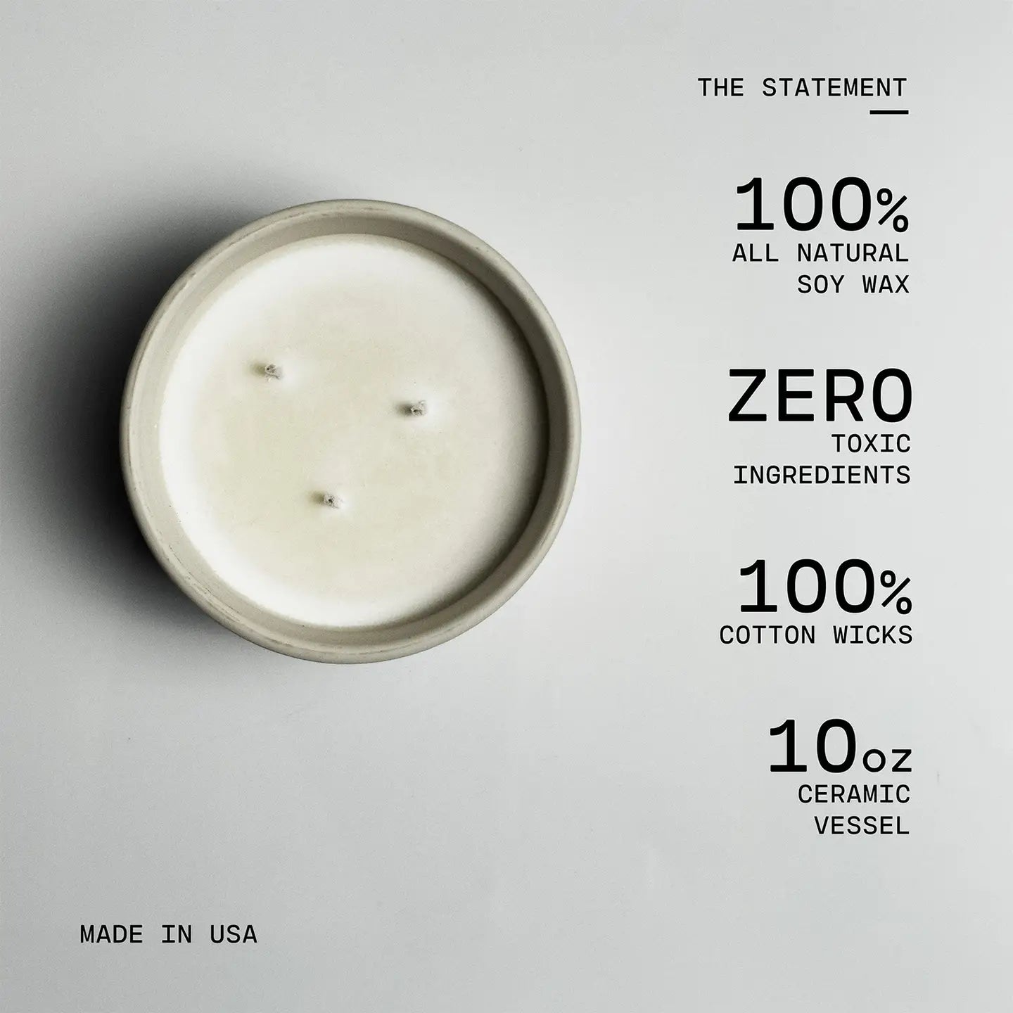 Juicy, floral, and irresistibly sweet. Peaches & Poppies blends luscious ripe peaches with delicate wild poppies, jasmine, and rose petals, all wrapped in a creamy embrace of vanilla bean and soft musk. Crafted to captivate with bold style and unforgettable scent, our Statement Collection candles are hand-poured using all-natural soy wax and premium fragrance oils for a clean, long-lasting burn. Each sleek vessel is topped with a natural stained wood lid and features three cotton wicks for an even, room-filling fragrance experience that lasts 70+ hours.