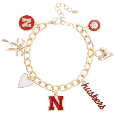 Nebraska Huskers Enamel Icons Charm Bracelet