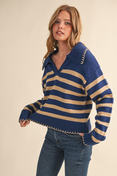 Navy Striped Collared Sweater