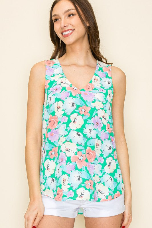 Introducing the Floral Oasis Tank Top - perfect for those who want to add a pop of color to their wardrobe! With a flattering v-neck design and gorgeous floral print, this tank top will surely make you stand out.