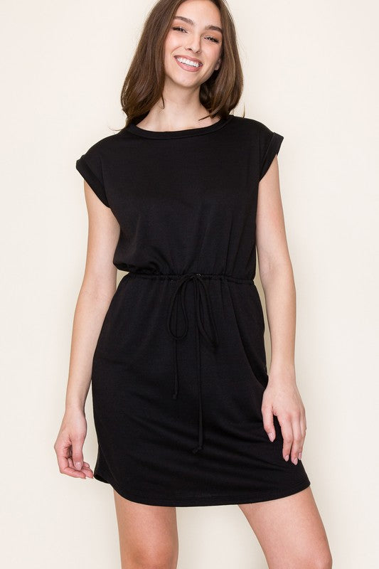 The Kelsey Drawstring Dress is the perfect addition to your wardrobe. Versatile and stylish, it can easily be dressed up or down for any occasion. Stay comfortable with this must-have piece!