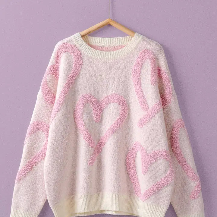 Cozy up in this charming crew sweater featuring an adorable heart texture throughout. Whether you're snuggling at home or out and about, this sweater wraps you in comfort with a touch of sweetness. A delightful addition to any collection that celebrates the joy of simple pleasures.