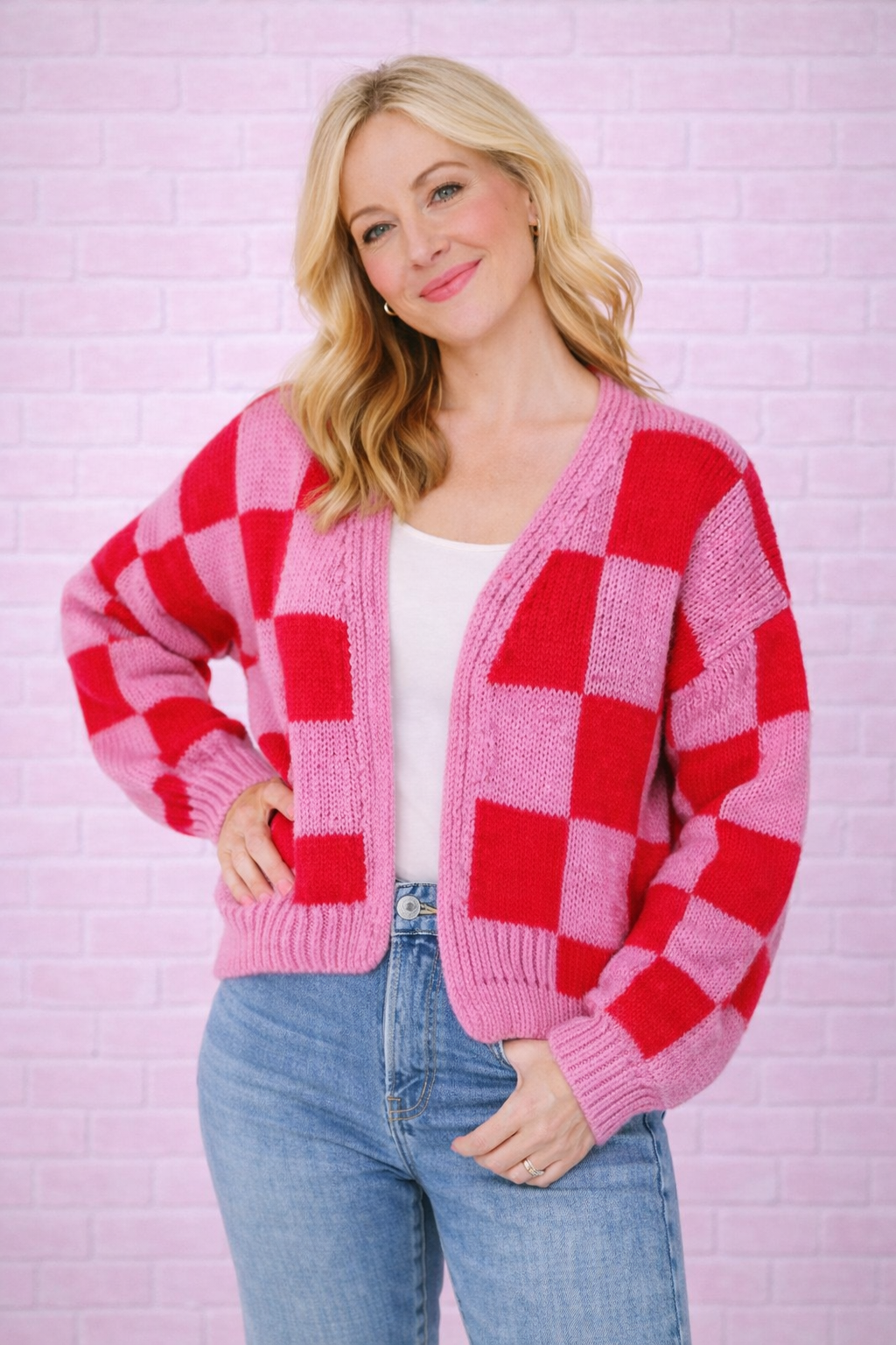 The timeless checkered design brings a touch of vintage-inspired fun, while the versatile color combo works with practically everything in your closet. Whether you're heading out for coffee or cozying up at home, this cardigan is your go-to piece for effortless style and warmth.