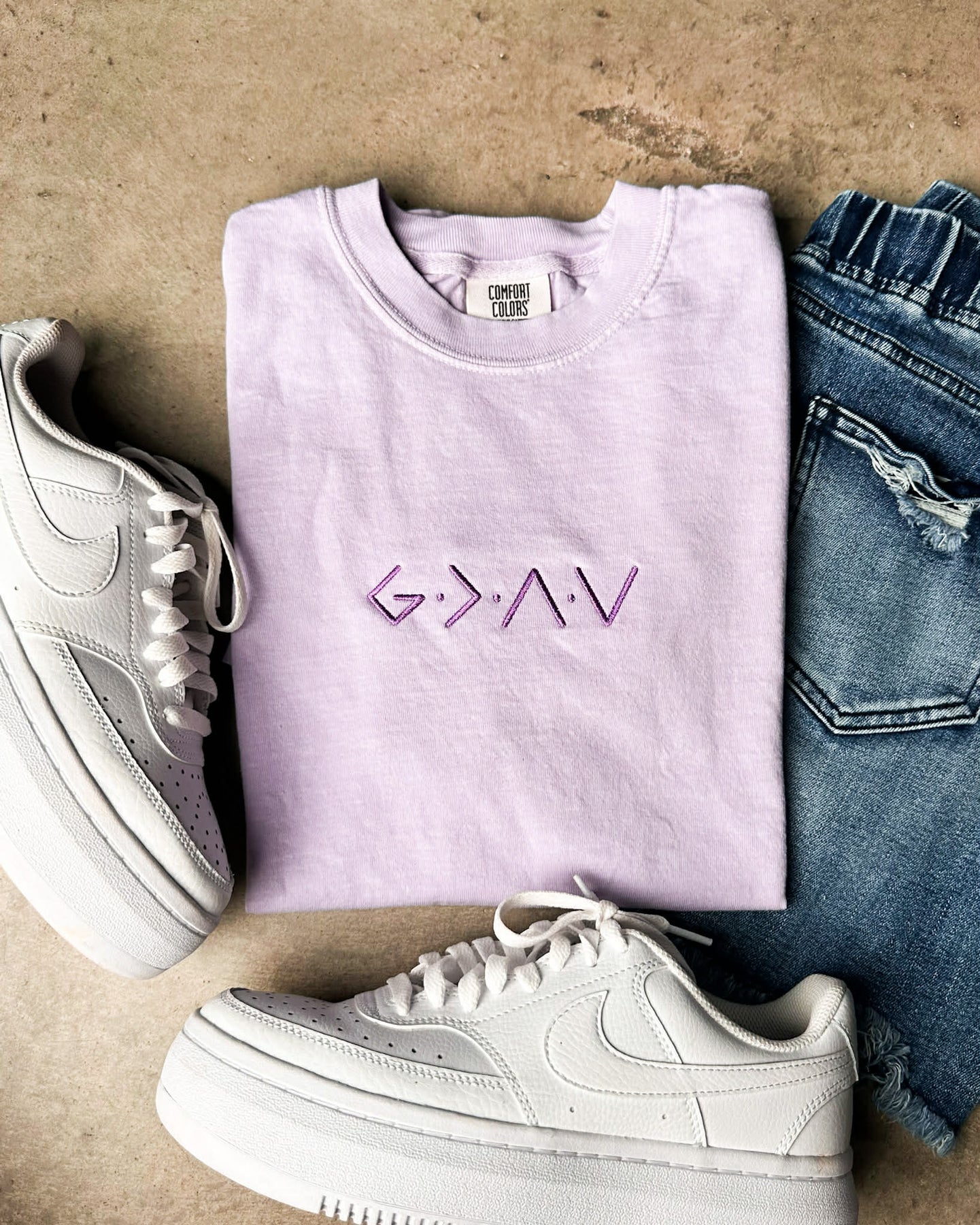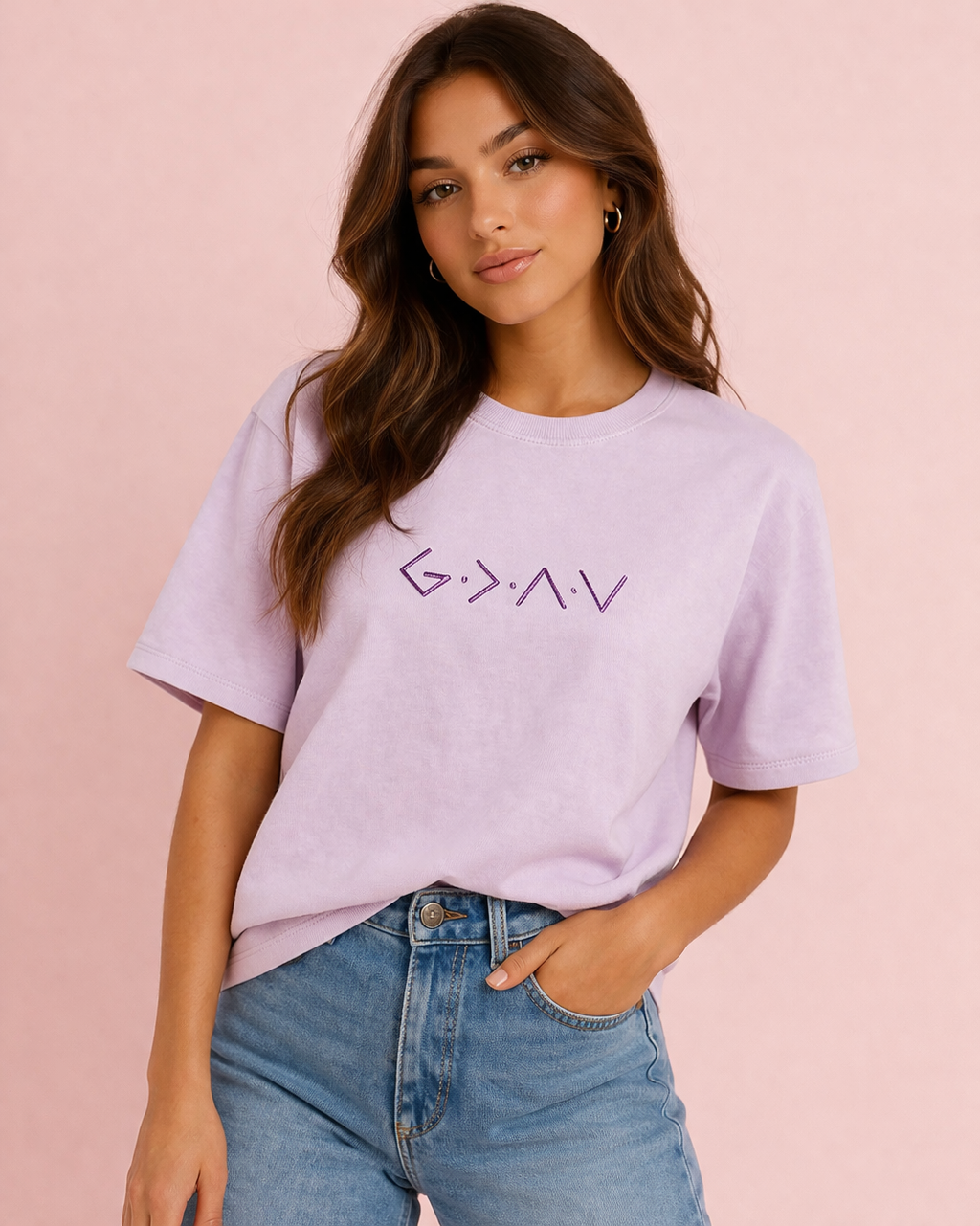 Embrace faith and positivity with this meaningful tee. The "God Is Greater Than The Highs and Lows" message serves as a daily reminder that spiritual strength transcends life's ups and downs. Crafted in soft, comfortable lilac, this classic crew neck tee is perfect for everyday wear, whether you're heading to church, running errands, or relaxing at home.